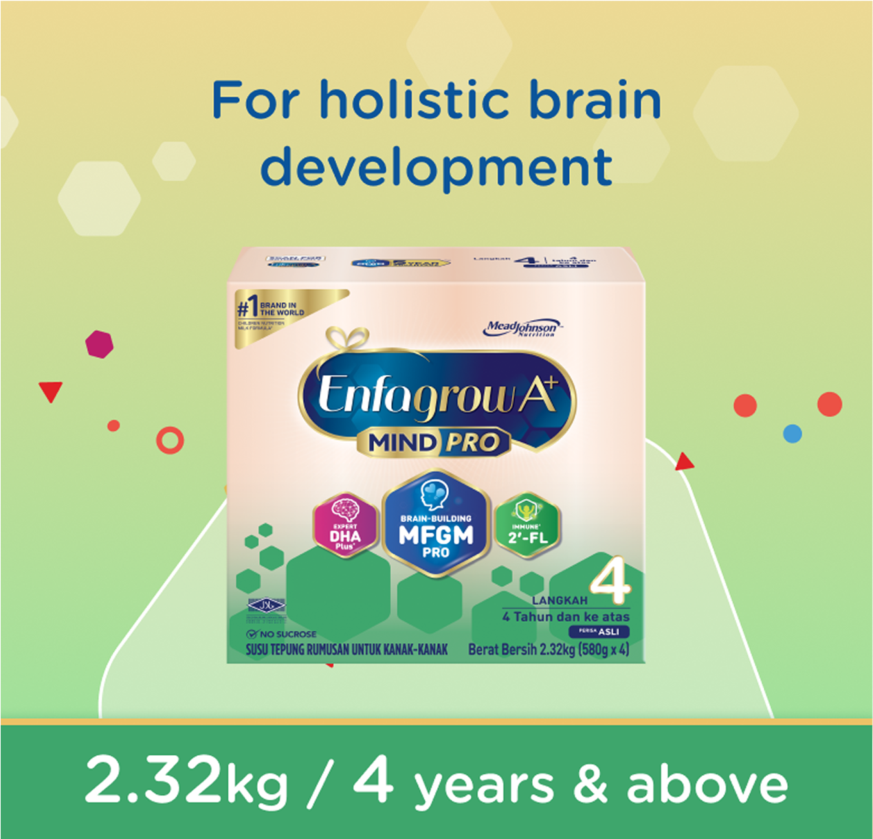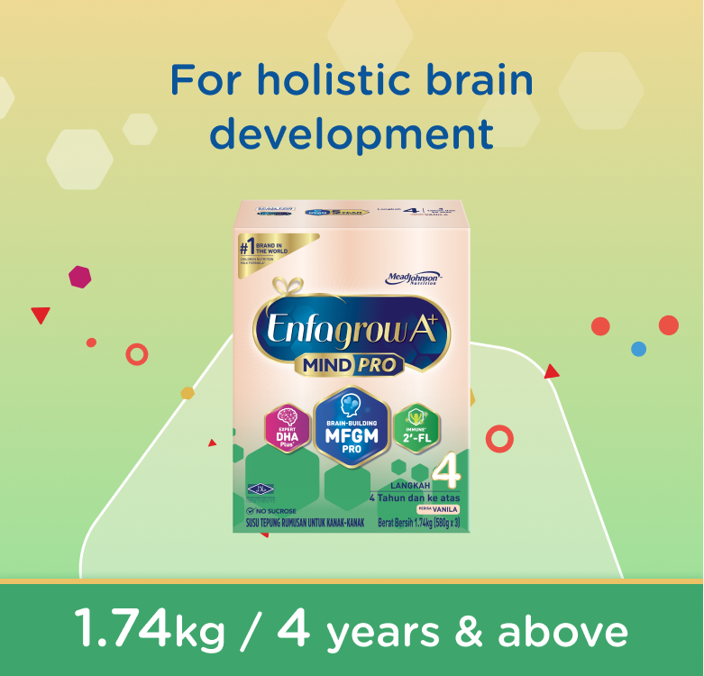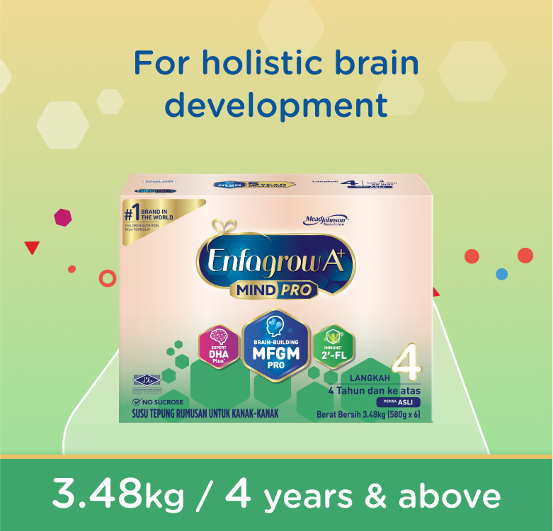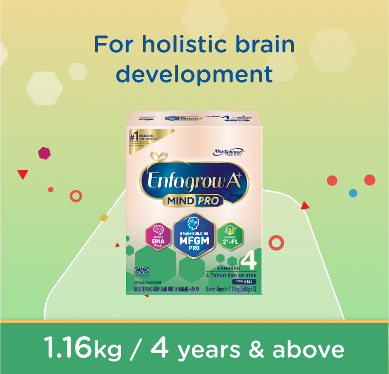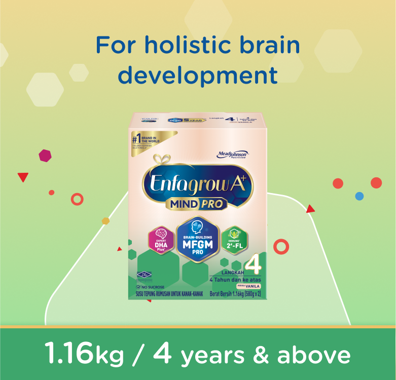 Enfagrow A+ MindPro Step 4 with brain-building MFGM and expert DHA Plus+ is a scientifically formulated milk powder for children aged 4 years and above.